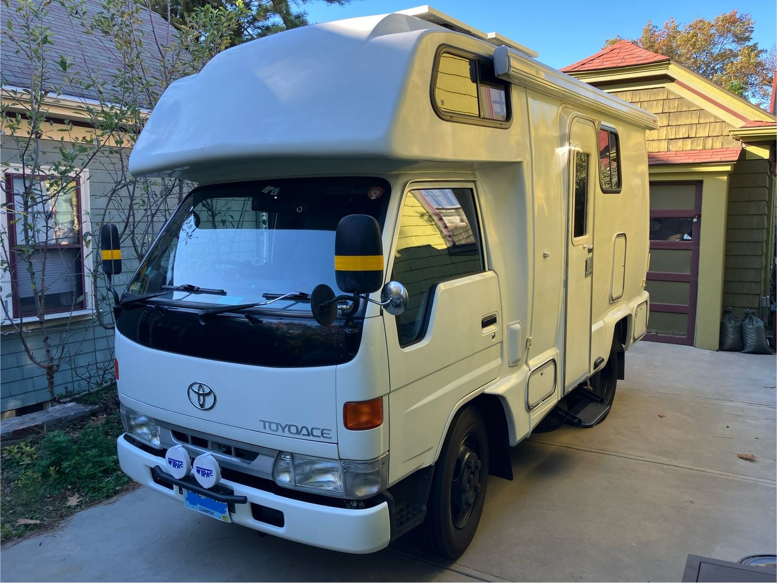Toyota ToyoAce (Dyna) Camper RV: I'm looking for a new owner for this unique machine imported from Japan! Right hand drive. Five speed manual. Rear wheel drive. Dually rear end. Recent tires have around 3000 miles on them. 1995 with approx 54,000 miles (86,000Km. speedo and odometer are in Km btw) on the trusty Toyota 3RZ-FE 2.7 4 cylinder - This engine was sold here in the US for a long time so parts for it are easy to get. 2 x 150 solar panels added to the roof that I used to keep my Ecoflow solar generator charged. (Ecoflow negotiable) Also added a composting toilet to the rear storage room (which can be removed or included). There is no black tank. There is a clean 5 gallon water tank for the sink and a 6 gallon grey water tank. Both are simple plastic jerry cans. Fridge works off battery or shore power. Shore power is 15 amp. There is a chassis battery and a separate house battery that Bothe get charged when the engine is running. Super simple. LED interior lighting. Currently in Rhode Island.